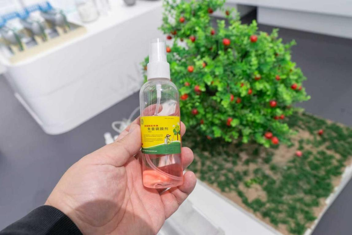 秦创原(延安)创新促进中心展示的免套袋膜剂,即苹果“面膜”。中国网信网李晓尹摄。