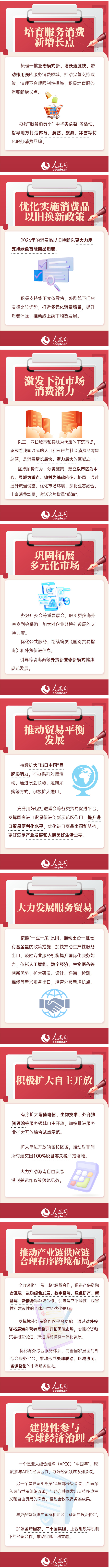 “十五五”规划建议提出“大力提振消费”“积极扩大自主开放”“推动贸易创新发展”等具体举措。中央经济工作会议也提出“坚持内需主导,建设强大国内市场”“坚持对外开放,推动多领域合作共赢”。“十五五”新开局,我国将如何进一步激活消费主引擎?怎样推动贸易创新发展?扩大高水平开放还有哪些新举措?一组海报看懂。
