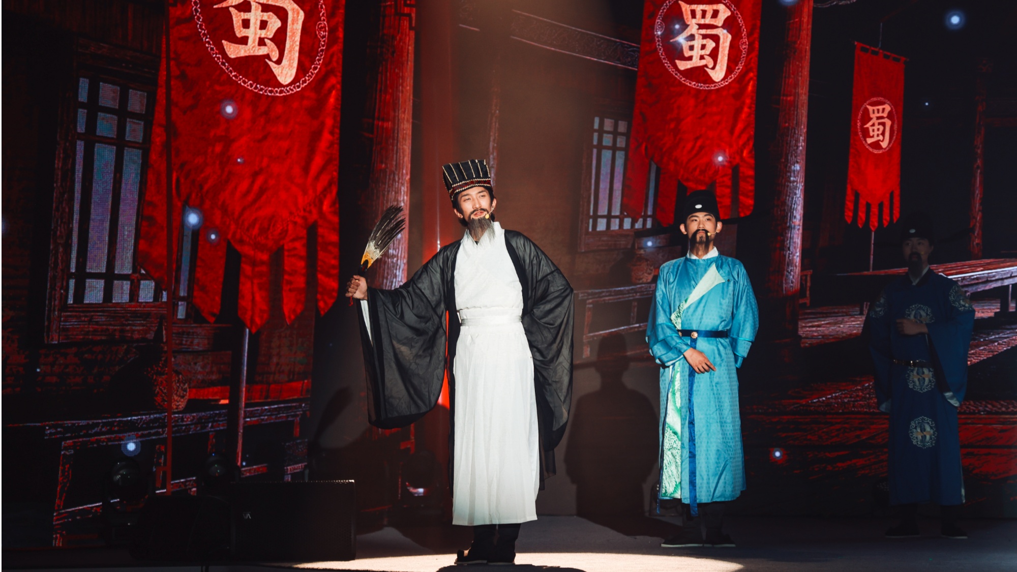 “幼常之死,痛在我心。然,军法如山,岂可因人而废?”舞台上的诸葛亮声音低沉,却字字千钧。对面,当代大学生汪国伟目光灼灼,躬身行礼:“丞相,您挥泪斩马谡,守的是法,护的是国。”