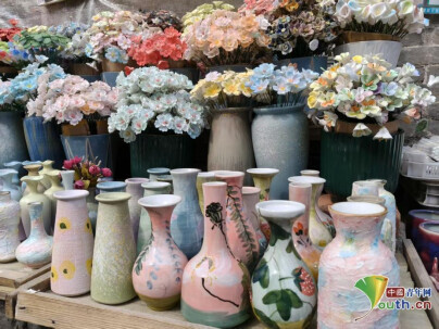 古镇街内随处可见的瓷器。中国青年网见习记者王煜鑫 摄