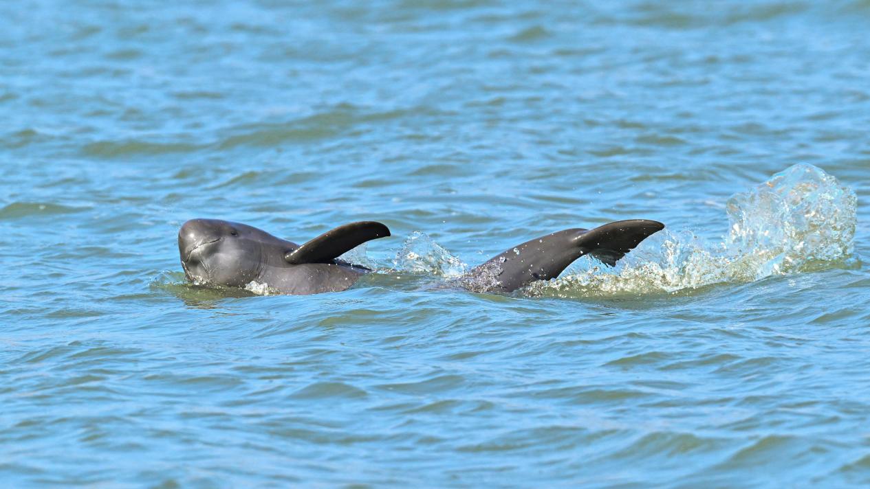 图为南京段长江江豚出水瞬间。主办方供图。