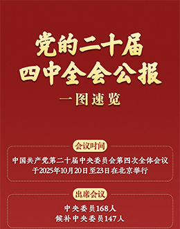 中国共产党第二十届中央委员会第四次全体会议,于2025年10月20日至23日在北京举行。全会听取和讨论了习近平受中央政治局委托所作的工作报告,审议通过了《中共中央关于制定国民经济和社会发展第十五个五年规划的建议》。习近平就《建议(讨论稿)》向全会作了说明。